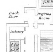 The sudatory is clearly marked on a floorplan in Dr Jameson’s Treatise on Cheltenham Waters (second edition, 1809) but although the room is still present on a floorplan in the third edition of the Treatise (1814) it is no longer labelled as a sudatory. Neither is it referred to in the text which may suggest it is no longer being used by this time. Vapour baths were available throughout the 1820s-1850s and a hot air bath appears on the tariff lists from the 1830s onwards.