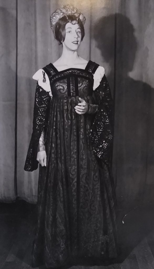 ‘Generally, the playing was on a high level. The ladies were over-parted, but Doreen Zimbler made a brave shot at the tragic Queen. Evelyn Arengo-Jones gave a good study of a light0of-heart Ophelia – a sister to Cressida, one might say – in the opening scene, but was at a loss when insanity came upon her. She should doff her court wig for this scene and loosen her hair. Her exit crooning over the lute as if it were a still-born child was a fine touch.