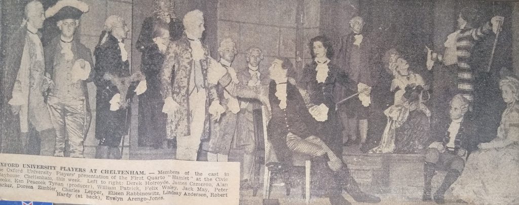 His review, under the heading Oxford Players’ Achievement in Hamlet, was three times longer than usually allocated to the Echo’s theatre criticism but is worth quoting in full: ‘It was an exciting evening at the Civic Playhouse on Saturday. The Oxford University Players, well known both here and in Paris for their work under the direction of Ken Peacock Tynan, presented Shakespeare’s First Quarto Hamlet for the second time in England in the last quarter of a century.